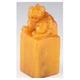 3" TIANHUANG DRAGON SEAL 3" Tianhuang dragon seal . Face is carved with four Chinese characters - Chun yu jiang nan. Beautiful red veins. Size: 3", Est. 150-350, Lot: 32175
