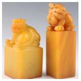 TWO TIANHUANG DRAGON SEALS Two Tianhuang Drangon Seals, approximately 3.2 and 3.8", carved with four Chinese characters, you rong nai da. Size: 3.2 - 3.8/", Est. 200-400, Lot: 32176