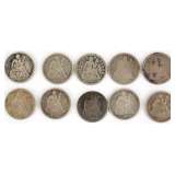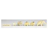 LOT OF 6 IVORY AND BONE CARVINGS OF ELEPHANTS 6 carvings in bone and ivory of miniature elephant figures. Size: .25" - .5", Est. 70-130, Lot: 32178