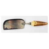 IVORY HANDLED PLATED CRUMB SCOOP Silver plate crumb scoop marked Mappin & Webb Princes' Plate -Ro 71552-. The handle is made from the end of an elephant tusk and measures approximately 5.5" Size: 13.5", Est. 50-150, Lot: 32180