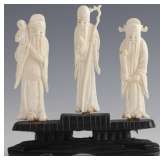 THREE CARVED CHINESE IVORY STAR IMMORTALS FIGURES Hand carved Fu, Lu, Shou ivory figures. The three star immortals known for fortune, prosperity, and longevity. Each affixed to a 1" wooden stand. Size: 3.9", Est. 100-200, Lot: 32188