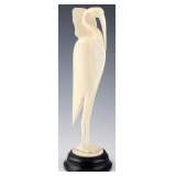 CARVED IVORY PELICAN FIGURE Carved ivory pelican figure on 1" wooden base. Right toe is missing off of right foot. Size: 7.5" with stand, Est. 150-350, Lot: 32189