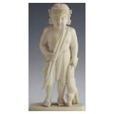 CARVED SRI LANKA IVORY FIGURE OF A HUNTER Small ivory figure of a hunter with bow and day's kill in each hand. Hunter appears to be of Indian decent from the island of Sri Lanka. Size: 3.5", Est. 50-150, Lot: 32190