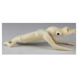GREENLAND INUIT TUPILAK CARVED IVORY SPIRIT FIGURE A native Inuit Tupilak spirit figure carved from whale's tooth. Does not stand up. Size: 3.5", Est. 150-300, Lot: 32200