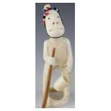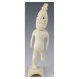 GREENLAND CARVED IVORY INUIT TUPILAK SPIRIT FIGURE A native Inuit Tupilak spirit figure carved from whale's tooth. Figure has beaded head dress, walking stick, and bucket. Size: 4.5", Est. 150-300, Lot: 32206