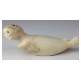 GREENLAND INUIT TUPILAK CARVED IVORY SEAL FIGURE A native Inuit seal figure carved from whale's tooth. Size: 5.5", Est. 100-200, Lot: 32209