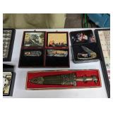 Cork boards and bins of 50 of obsolete Police patches, collection of signed sports cards, baseball, football, hockey. Envelopes of signatures, Cleveland Indians and Cavs pennants. Jewelry including turquoise and lapis lazuli, sterling and costume. Furniture, lots of artwork, tools and such. Accepting quality consignments only, call first.