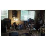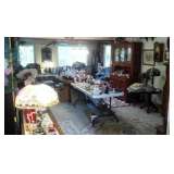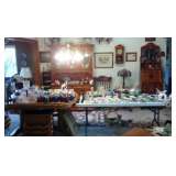 Wow! 4 days of inventory set up for this beautiful estate sale. Over 700+ pieces of jewelry, 100's of new and pre owned shoes, clothing and purses of every color and kind! Beautiful lace and beaded, tiffany style lamps, (dozens) dolls, porcelain purses hand painted, new and gently used linens, wall, desk and standing clocks, Rooster deco everywhere, Lane bedroom set, another full bedroom set, desks, foot stools, coffee and end tables, pictures, beautiful formal living room full of crystal, unbelievable amounts of collectibles, deco boxes, curios, chandeliers, china hutch, table, chairs, kitchen is full to the top, butcher table, ceiling pot holder, standing jewelry boxes, multiple ring boxes, dresser jewelry boxes, angel collectibles, carnival glass, Fenton glass and so much more for you to see and purchase. This home is immaculate and clean! See you soon. |