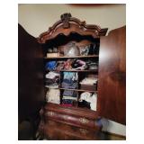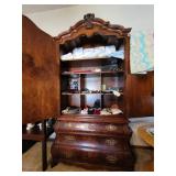 Office Drexel Chinoiserie China Cabinet Chinoiserie Campaign Style cabinet Carousel Horse Antique Office Desk Antique Office Chair Vintage Side table Canon Camera Elephant figurine collection Wooden dresser