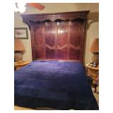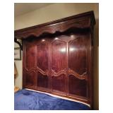 Primary Bedroom Henredon Villandry King size wooden canopy bed and mattress Henredon Filio French Baroque Armoire Vintage Drexel Heritage Chinoiserie Credenza Japanese Black Laquer End Tables Vintage Sony TV and cabinet