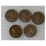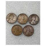 Five 1914 Lincoln Cents, G&VG
