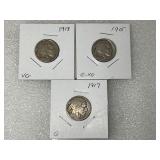 1915 (G-VG), 1917 (G), 1918 (VG) Buffalo Nickels