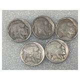 Five 1916 Buffalo Nickels, Restored Dates