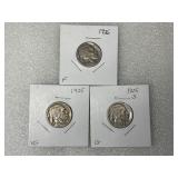 1925 (VG), 1925-S (G), 1926 (F) Buffalo Nickels