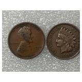 Two 1909 Indian Head Cents, Goods With Full Rims