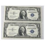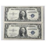 Two Consecutive 1935C $1.00 Silver Certificates, Crisp UNC