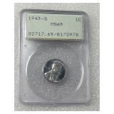 1943-S Lincoln Cent, PCGS Graded MS 65 In Older Collectible PCGS Holder