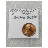 1959 Lincoln Cent, Gem BU 65 Red