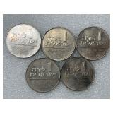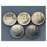 Five 1958 One Lira Coins, BU From Roll