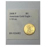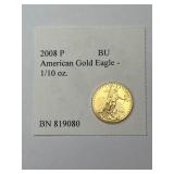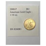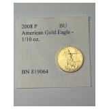 2008 P American Gold Eagle Coin, 1/10 oz. BU, BN 826083