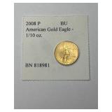 2008 P American Gold Eagle Coin, 1/10 oz. BU, BN 818981