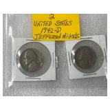 Six Nickels, 1938, 1941, 1942-P, 1942-D, 1943, 1945