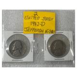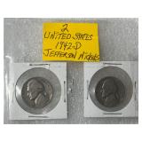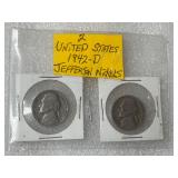 Two 1942 Mercury Dimes