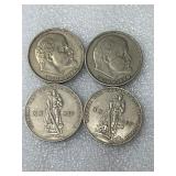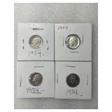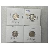 Four 1954 Roosevelt Dimes