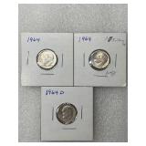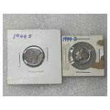 Two Mercury Dimes, 1944-S and 1944-D