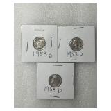 Three 1953-D Roosevelt Dimes