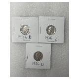 Three 1956-D Roosevelt Dimes