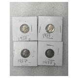 Four 1957 P and D Roosevelt Dimes