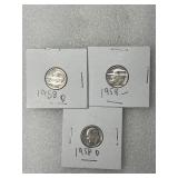 Three 1958 Roosevelt Dimes