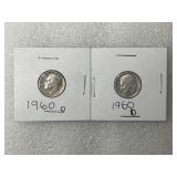 Two 1960-D Roosevelt Dimes