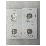Four 1961-D Roosevelt Dimes