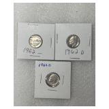Three 1962 P&D Roosevelt Dimes