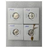 Four 1964 P&D Roosevelt Dimes
