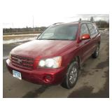 6 2001 Toyota Highlander 4x4 SUV, VIN # JTEHF21A310037111 Year: 2001 Make: Toyota Model: Highlander Vehicle Type: SUV Color: Red Mileage:191,261 Plate: HGY684; Exp: Oct. 2024 Body Type: 4 Door seats 5 Trim Level: Base Drive Line: 4WD Engine Type: V6, 3.0L; DOHC Fuel Type: Gasoline Transmission: Automatic VIN #: JTEHF21A310037111 Features and Notes: AM/FM/CD/Cassette Radio Power windows, locks & mirrors Cruise control A/C Rear defrost & rear wiper Mud flaps 4-Wheel drive Known problems: Battery is weak but will jump start Rear wiper is missing This Toyota Highlander has lower miles and All glass is free from any chips or cracks. Runs, Drives & was Driven in. **ESTIMATED ADDITIONAL FEES CHARGED ON INVOICE:** Documentation Fee: $45.00; County Excise Tax: $20.00, Tech Surcharge: $2.25; PSV: $3.50; Transfer Tax: $10.00; Title Fee: $8.25; State/Deputy Filing Fee: $13.00; MN State Sales Tax: 6.875% of Final Purchase Price. (Additional $2.00 fee if loan is applied to vehicle) IMPORTANT NOTICE: In Compliance with MN state law effective 1/2016 This law applies to any vehicle to be registered and titled in the state of Minnesota. Buyer of this vehicle will be required to provide the following at pickup, before we can transfer the title: o NEW INSURANCE CARD (for this vehicle) Or you may provide all three of the following: o NAME OF INSURANCE COMPANY o POLICY NUMBER (for this purchased vehicle) o EXPIRATION DATE
