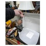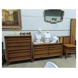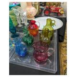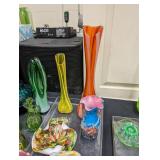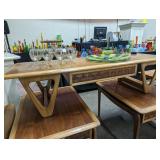 We have an auction hall full of quality Mid Century Modern glassware and furniture, don't miss this one! Glassware: Kanawha, Rainbow, Fenton Burmese uranium lattice vase and mini happy cats, Uranium, Blenko including decanters designed by Wayne Husted & Joel Myers, Viking including Tundra orange & uranium swung vases, ducks, alligator, long tail birds, XLG blue mushroom-5" wide top. Crackle glass pitchers and vases, Murano ducks, Rare Disney Mickey Mouse, Donald Duck and Goofy perfume bottles. Pyrex, Fire King & Glasbake. Higgins charger plate. Mid Century Furniture: Lane Perception coffee table, 2 end tables & triangle guitar pick table. Ekornes arm chair w/ottoman, Baumritter bouncy chair w/arms, Magnus Olesen Danish arm chair-no cushions, Willett Impact bedroom set- highboy dresser, long dresser, nightstand, two twin beds, end table(has been refinished), Broyhill Saga bedroom set- tall chest of drawers, long dresser w/mirror and nightstand, 7pc Danish bookshelf unit, Blonde Lane tall cedar chest, American of Martinsville Dania bedroom set- tall chest of drawers and long dresser w/mirror Mid Century Accent pieces: Curtis Jere signed large copper tree wall sculpture & leaves w/butterfly. 6' aluminum taper Christmas tree, Flying High wallpaper sample book, White plastic feather branch Christmas tree w/red berries, 1961 Masketeers lion, Lisa Larson sculpture, Arabia, Mikasa, aluminum cups. Furniture: 5' round marble top dining table with 4 chairs-base has brass winged feet. Marble & leather top accent tables, Pink marble column curio cabinet, twin beds, metal racks. Elephants, Dachshund dogs, rugs, hand stitched quilts, keyboard, electronics, turntable, flower arrangements, lots of lamps, bottles, Man of the North drawer pulls and more! Accepting quality consignments only, call first. Call Dennis Dempsey at 440-983-1427. Auctions will be held at: