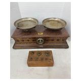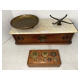 Vintage Wood Box w/Scale Weight By Grams, Tweezers