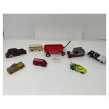 7pc Dairy Queen Wagon , Dodge Wreck Truck, Land Rover Fire Truck, Yellow Pick-Up Truck, Sky Chief Convertible Car, 1912 Rolls Royce Car, D