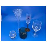 Variety of Glasses -Stemware, Amber Tumbler, Small Brandy Glasses