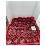 Vintage 24pc Cranberry Thumbprint Design Stemware Glasses and Sherbert Dessert Glasses