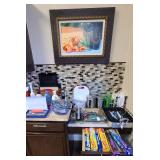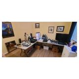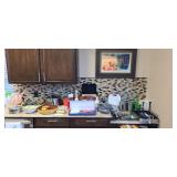 Formal Living and Dining Rooms; Kitchen and Breakfast Nook; Family Room; Office and Garage Signed Scott Jacob’s Artwork Signed Anatole Krasnyansky Artwork Formal Sofa and Loveseat Mahogany Coffee Table and Side Tables Duncan Fife Antique Pie Crust Table Exceptional Mid-Century-Modern Lamp Mahogany Dining Table with Extra Leaf Lighted Mahogany China Cabinet Six Dining Chairs with Upholstery Seats Hayasi Hand-Painted China Longchamp Crystal Glassware Small Curio Cabinet All Things “Kitchen”: Including Stainless Steel Cookware, temptations Bakeware, Oneida Dinnerware, etc.... Oster Microwave LG French Door Refrigerator/Freezer LG Washer (2022) and Dryer (2019) Glass Top and Metal Dining Table with 4 Chairs Powered Lazyboy Sofa and Loveseat Glass Top and Metal Coffee Table, Sofa Table, and Side Table Entertainment Stand for 70” TV and Equipment Sharp Aquos LC-70SQ15U 70" Full LED SMART TV Mahogany Desk and 2-drawer File Cabinet High Back Leather Desk Chair Electronics Home Décor Linens Craftsman toolbox; Hand and Yard Maintenance Tools Garage Fridge Grill Apart Turquoise Necklace and Earrings 10K White Gold Pearl Ring; Necklace and Earrings (Vintage) Brass F-16 Falcon Fighter Jet Luminara Real Flame-Effect Candles |