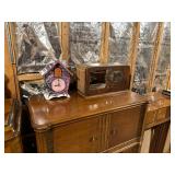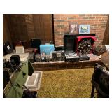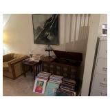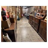 Hard to find Emerson High Fidelity 1950's console record player, Milo Baughman style Merton Gershun for Dillingham Mid Century bookmatched walnut sideboard/buffet/credenza, boho chic Henry Link rattan/wicker dressers and matching nightstands, service for 12 of Lenox Creton dinnerware, original art and wall decor, Mikasa dinnerware, Dansk dinnerware, kitchenware, lots of vintage and antique radio cabinets and parts along with a few complete vintage radios, kayaks, wind surfing board, holiday items, glassware, twin power adjustable bed, electronics, Hot Wheel cars in the blister packs, books, clothing, antique dining room tables and chairs, antique decorative sideboard, mirrors, rugs, Mid Century sofas and chairs, Everett brand console piano with bench, lamps, Henry Link bar cart, beds, night stands, vintage Abbess desk that needs restoring, patio furniture and much more.