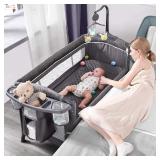 ADOVEL Baby Bassinet Bedside Crib, Pack and Play with Mattress, Diaper Changer and Playards from Newborn to Toddles, Grey
