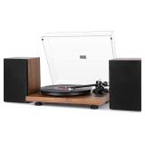 1 BY ONE Bluetooth Turntable HiFi System with 36 Watt Bookshelf Speakers, Patend Designed Vinyl Record Player with Magnetic Cartridge, Bluetooth Playback and Auto Off