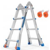 - 【Multi-Position and Scenarios】The Multifunctional collapsible ladder can convert to an A-frame ladder, extension ladder, trestle-and-plank, 90-degree, and staircase with ease. Can be used for cleaning, repairs, painting indoors, trimming trees, picking fruit, cleaning gutters, etc. REACH HEIGHT: 17 Ft
