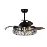 42 in. Modern Black Retractable 3-Blade Crystal Ceiling Fan Chandelier with Remote Control and Light Kit