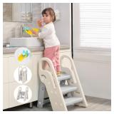 LUISLADDERS Ladder, A Frame 4 Step Ladder Telescoping Ladder, 17 Ft Reach Height Muti Position Folding Ladder Flared Leg & Wheels Design, 330 lbs Capacity Extension Ladder for Household Outdoor Work
